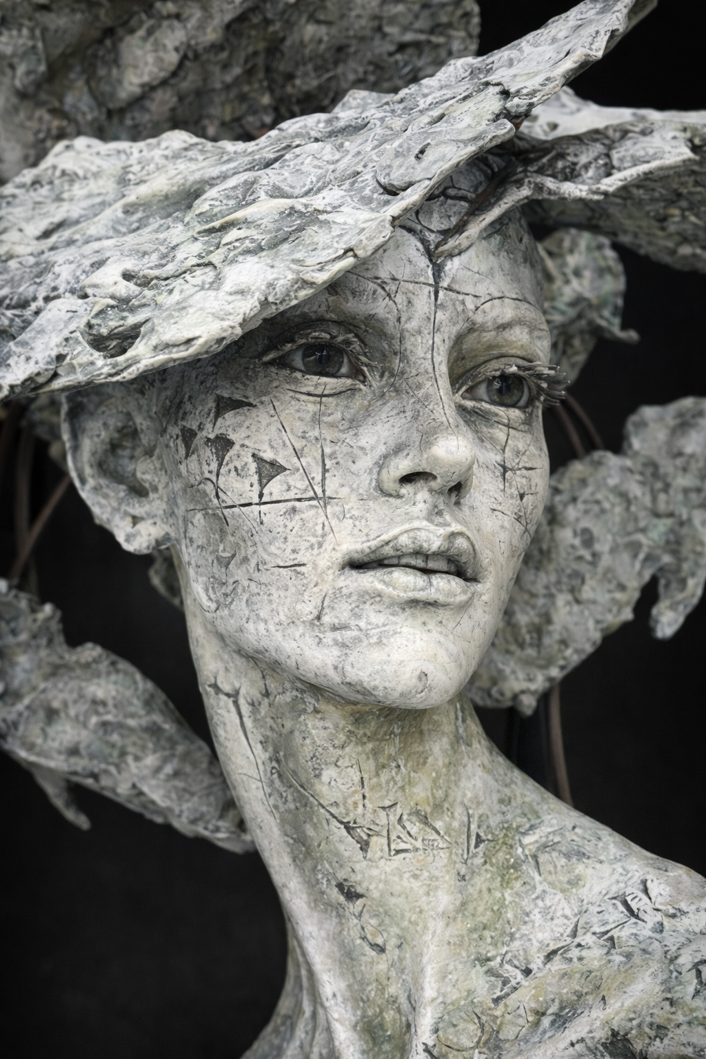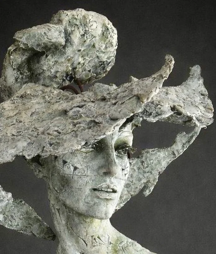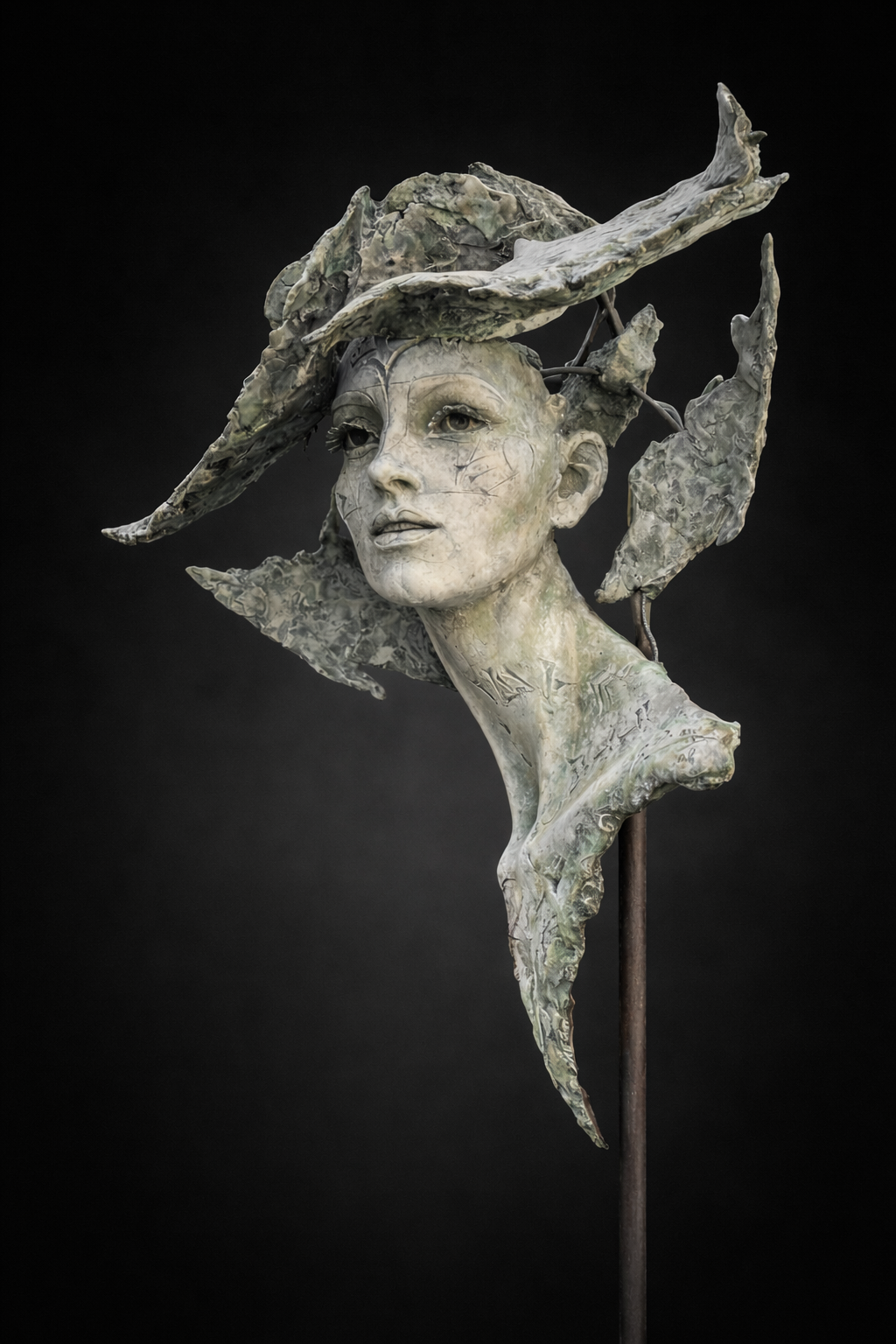 This work continues the exploration initiated in The Breath of Nammu, reinterpreting the primordial breath as a solidified, fragmented presence. The stone-like, hat-shaped structure surrounding the head replaces the ancient sacred crown with a contemporary gesture, positioning the female figure as a modern bearer of myth, memory, and origin.
